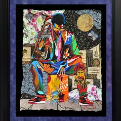 Flat Life is more than a technique — it’s an experience. Merging painting, sculpture, fabric, and paper into textured masterpieces, Marcus crafts art that leaps off the board and into the soul. His vivid colors, animated figures, and jazz-infused energy create dynamic worlds where music, motion, and emotion collide. Whether celebrating the beauty of human movement, the soul of jazz, or the universal language of love, every piece tells a story that resonates beyond the canvas.